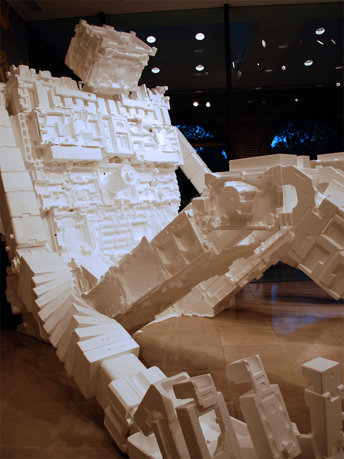 What happens when an artist has a penchant for robots and the reuse of discarded materials? Oversized "Styrobots" are created from used Styropor® packaging.